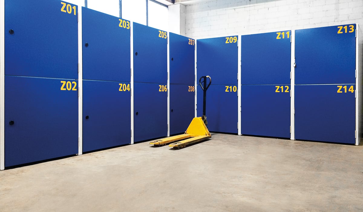 Ako najmenšia jednotka v Self Storage skladoch poskytujú dodatočný prenajímateľný úložný priestor, čím umožňujú maximálne využitie plochy a priestoru. To z nich robí ideálny doplnok k našim priemyselným priečkam. Naše skladové boxy je možné rozšíriť na ľubovoľný počet jednotiek. Na farbu dverí sú k dispozícii odtiene zo vzorkovníka RAL-Classic.